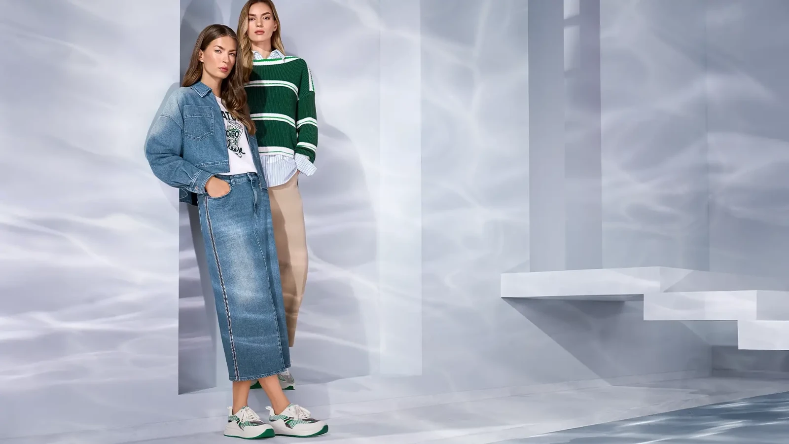 Коллекция «Городской Ритм» от MARC CAIN вдохновлена Нью-Йорком и ритмом жизни большого города. Образы сочетают в себе спокойные бежево-голубые тона с насыщенными зелеными деталями, которые словно являются яркими островками в пейзаже летнего города.